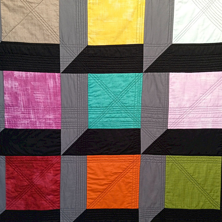 Alison works in textiles, primarily quilts. These are expressions of colour, shape and self.