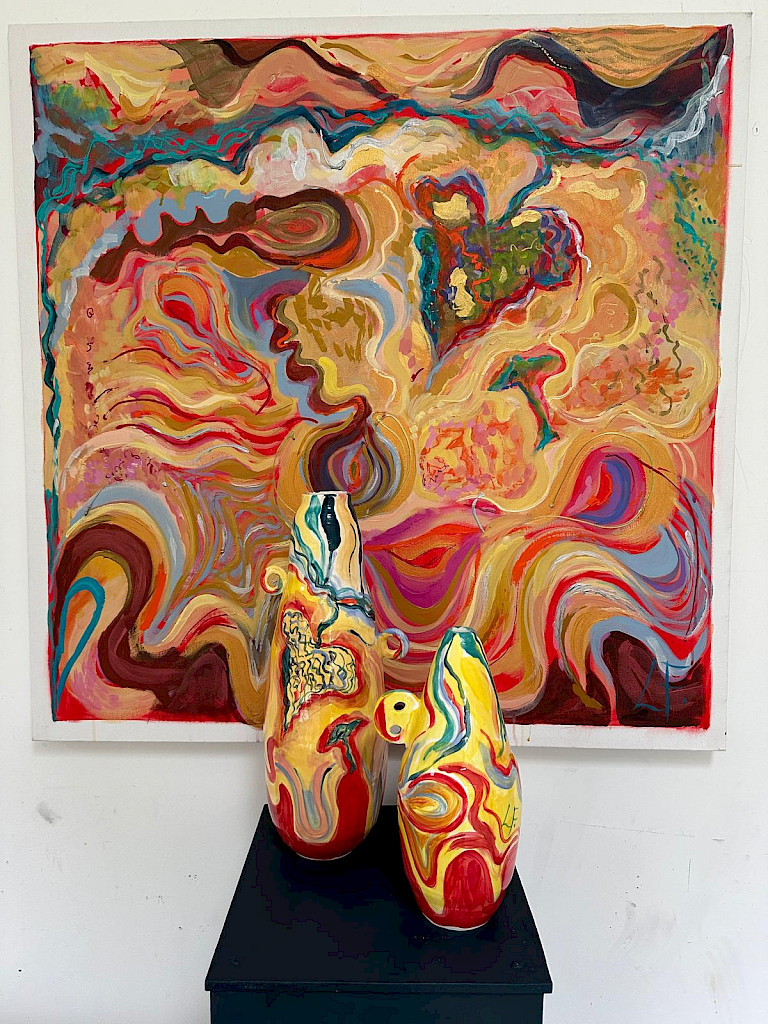 Froude and Froude present Laura’s paintings & handmade ceramics thrown by David and glazed by Laura.