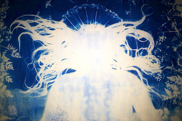 Inspired by Folkestone’s patron saint, her church and her waters, the works in this exhibition are interpretations of the story of St Eanswythe, a 7th Century Anglo-Saxon princess, and include an abstract landscape, painted with salvaged textiles, an ethereal shroud made using local flora, and ceramics made from Gault clay foraged from sacred sites across the town.