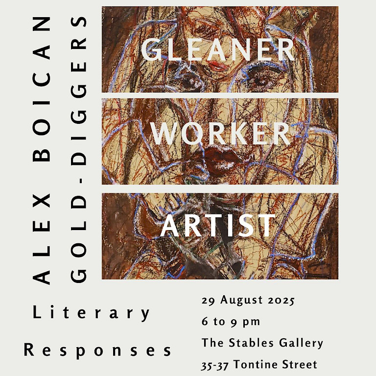 An evening of poetry. Literary responses by various local writers responding to the themes explored by Alex Boican in his show, Gold Diggers.
