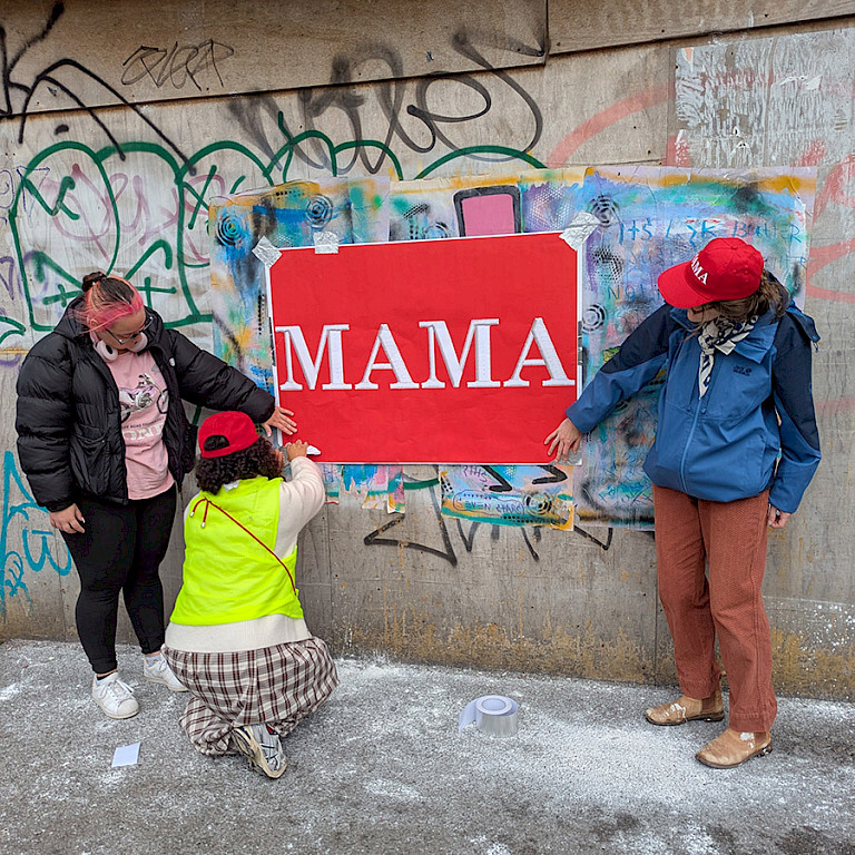 Public banner that says MAMA which stands for Make All Meaningful Again, openly replicating MAGA and suggesting to form a counter movement.