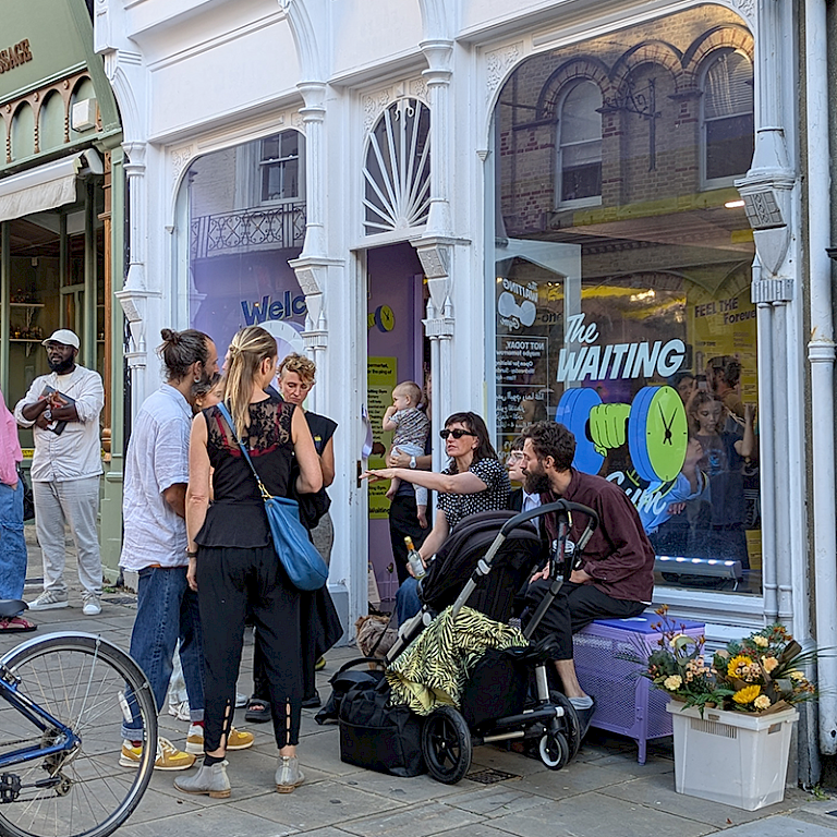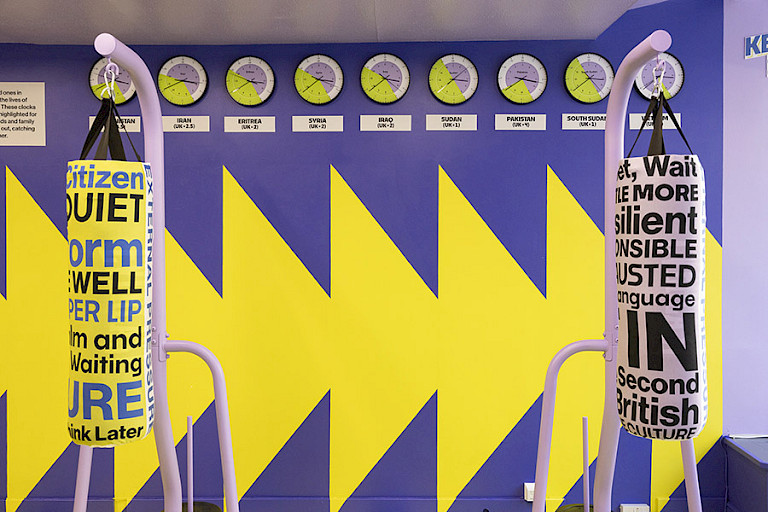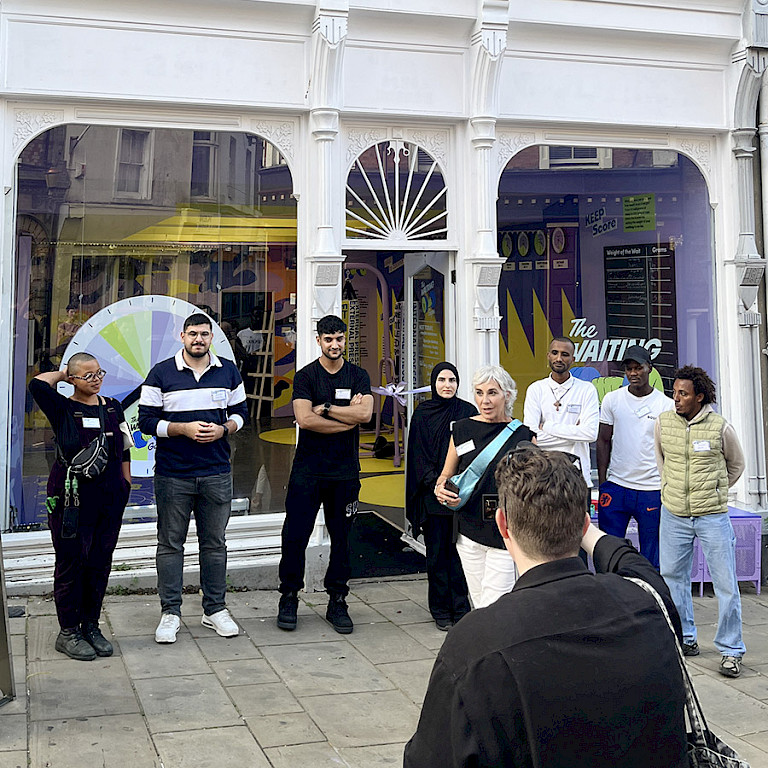 The Waiting Gym was commissioned by and developed in partnership with Mata Argaw, Ibrahim Ahmadzai, Djafarou Djibo, Grmalem Gontse Kasa, Dania Khaled and Obaida Sharkia, creative producers at The Studio, a co-design studio centring young people with first-hand experience of navigating the UK asylum system. This is The Studio’s third public artwork in Folkestone, following 2024’s billboard ‘Travel Deep’ in Payers Park, and climbable poem ‘Holding On’ at F51. This year, The Waiting Gym is presented as a co-commission with Folkestone Fringe.