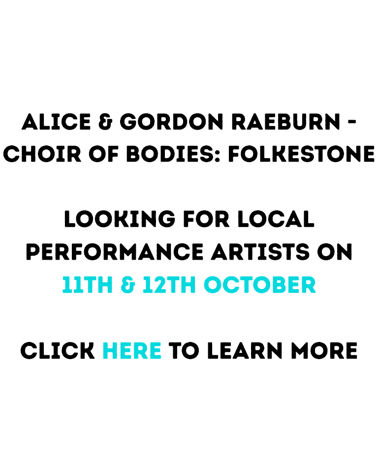 Choir of Bodies: Folkestone was thought upon the theme of what connects us and will change audience members into performance participants. All ages and abilities welcome. We will safely introduce a toolbox of prompts that we will build from as a collective and you can count on us to orchestrate us all into having an organised moving and resting choir of bodies.