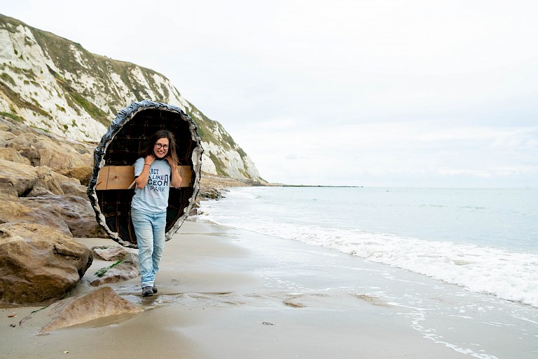 Chalk Coracle II invites you to walk down through the chalk cliffs and down through time. Guided by a gentle audio track and the landscape itself, gain a new perspective on this space where land and sea are one and the same.