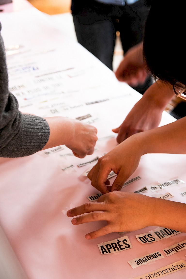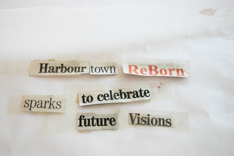 Ana held a series of collaborative workshops where she invited people to work together to write a text, or ‘Ode to Liberty’ as Ana referred to it. This piece of collective writing was formed from cut-outs of the day’s newspaper, turning negative headlines into positive reflections and statements.