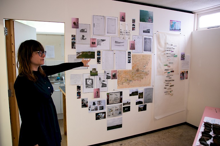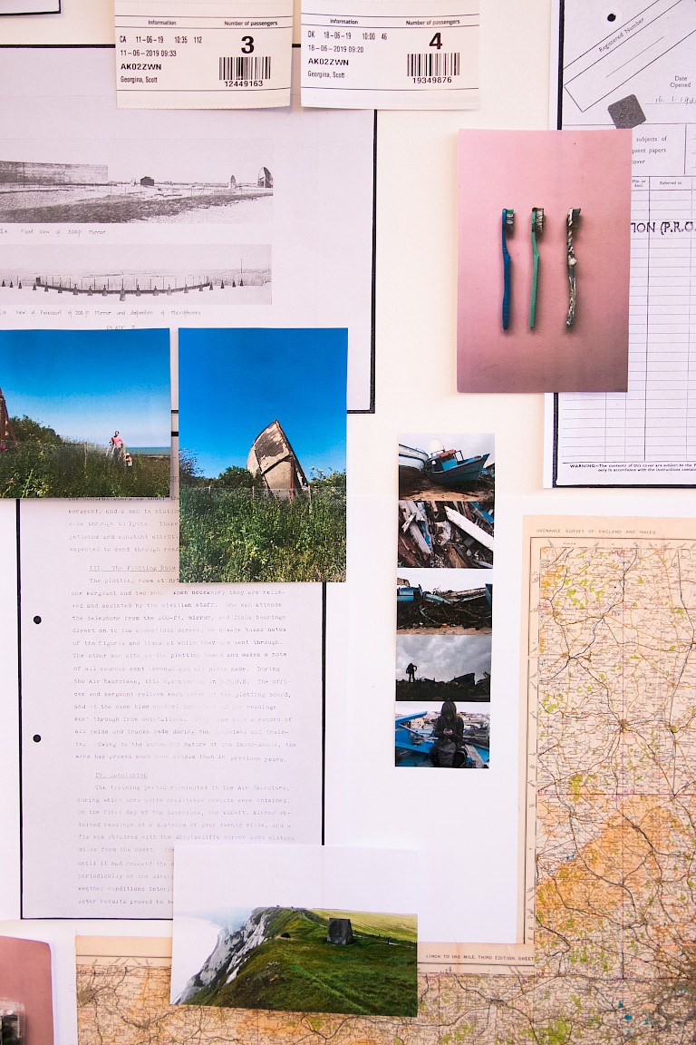 Migration thresholds and contested borderscapes are an ongoing enquiry in Ana’s projects and she used her research visit in April to discover more about these issues in relation to Folkestone. Ana did this by using the many archival resources available at the local library and Urban Room Folkestone. Ana also visited the remaining military infrastructure in the area and focused her attention on the sound mirrors which run along the South East coast of England.