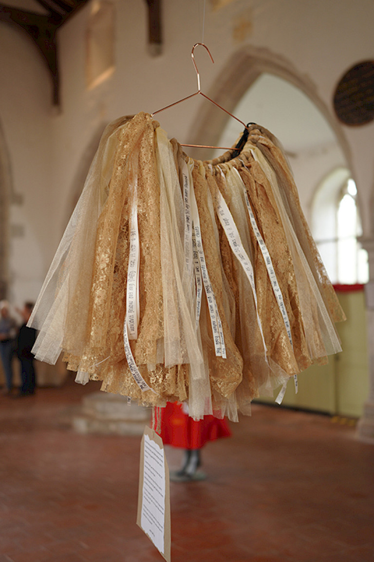 Passers-by at an a:dress Sew-In street event were invited to make a tutu from discarded fabric and onion and orange net bags. Come and see the beautiful result as modelled by the iconic Anthony Gormless