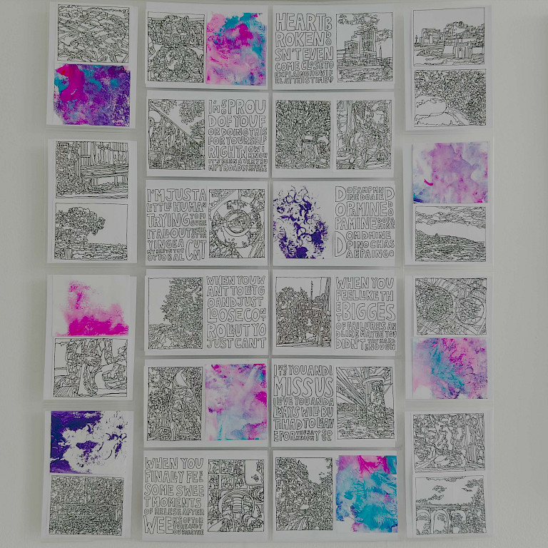 Some works on display. Artist at work/Work in progress. It will probably be messy.