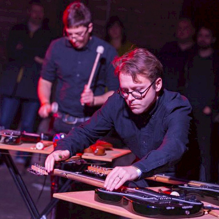 Mesmeric minimalism for prepared electric guitars, percussion and other instruments.