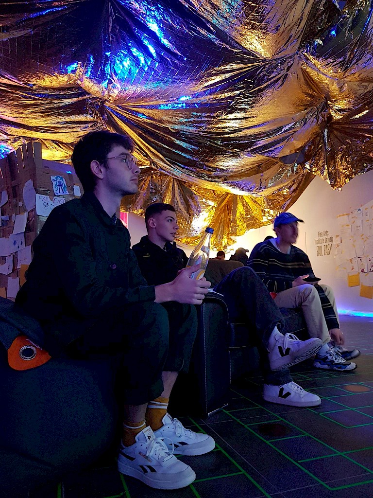 The first morning after the entire FAIL (Fine Arts Institute Leipzig) team had left Folkestone following their month-long residency I passed The Urban Room Folkestone on my way to town. It dawned on me how comfortable and adjusted I had become to them being in the space; which had been fully and completely been taken over by our friends from Leipzig - the spontaneous karaoke nights, the delicious food Jasmine would prepare in the very tiny kitchen for anyone and everyone who wanted to eat, the visits from curious and intrigued passer-bys who would notice the golden room with fog always emerging, and wonder what on earth was going on, or how they could be a part of it…