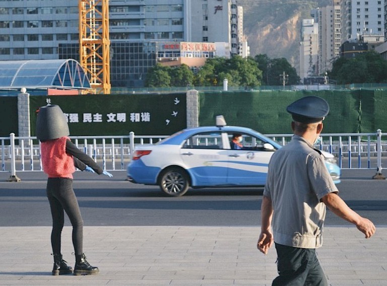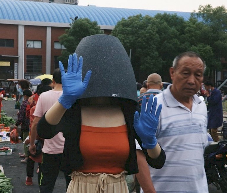HIJACK is an artistic duo co-founded by Jing Xie and Qiong Zhang, working at the intersections of performance, installation, and moving-image. Hijack has spent the month of May 2020 undergoing a REMOTE residency. As strict segregation is maintained across China, Hijack have produced a series of performances and interventions in the cities they live: Hubei & Gansu. Entitled: ‘白日摸瞎’, or ‘Shooting in the Dark’, the work aims to reflect their living conditions under isolation, global exclusion, and the rise of surveillance as part of the daily norm.