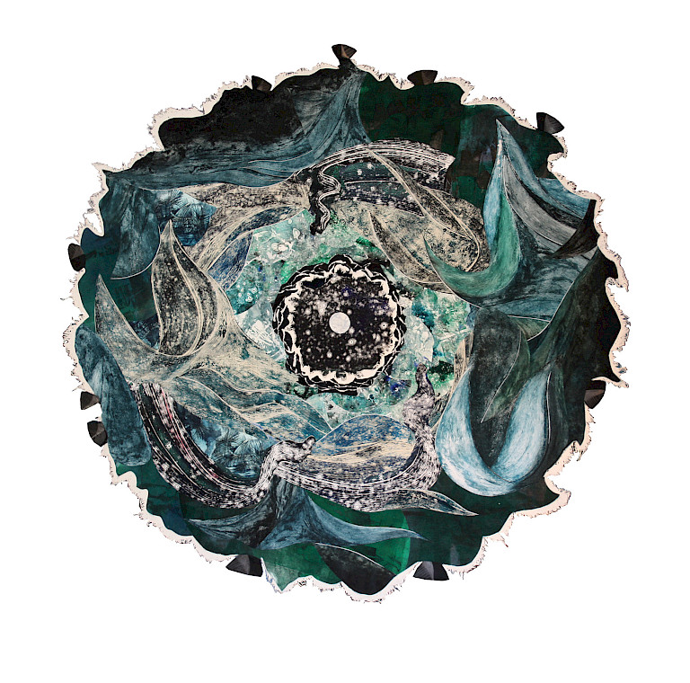 Original prints and collages by printmaker Catherine Robinson, featuring a large collage inspired by two books - Hope in the Dark by Rebecca Solnit, and Entangled Life, by Merlin Sheldrake. Solnit, life-long campaigner and activist, writes that change happens in the shadows - often through unnoticed collaborations between people. Biologist Sheldrake describes the symbiotic relationship between fungi and plants, and the interconnecting mycelium network in the soil supporting plant health and biodiversity. Folkestone writer Claude presents his reflections on the work.