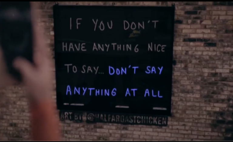 “If you haven’t got anything nice to say, don’t say anything at all” was a phrase I heard growing up. With the ever increasing influence that social media is having on our relationships, I believe that this phrase is more useful than ever, with neon as the perfect medium to present this. What’s the point of being mean, when you can be nice. - Eve