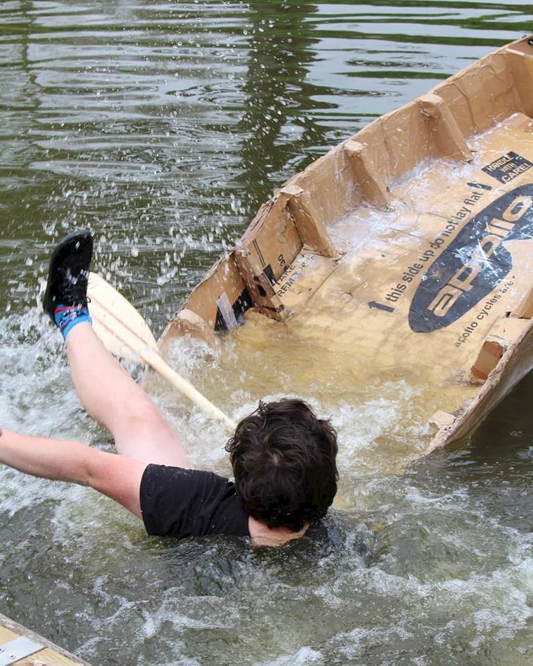 A cardboard boat slips quietly into the water. In that moment, its function as a vessel is realised, but at the same time water begins to seep into the material. Through a simple and absurd performative act, Jim Lockey explores loss, grief and the drive to keep going in the face of the inevitable. Where does this drive come from and how do we understand and deal with the loss of those things?