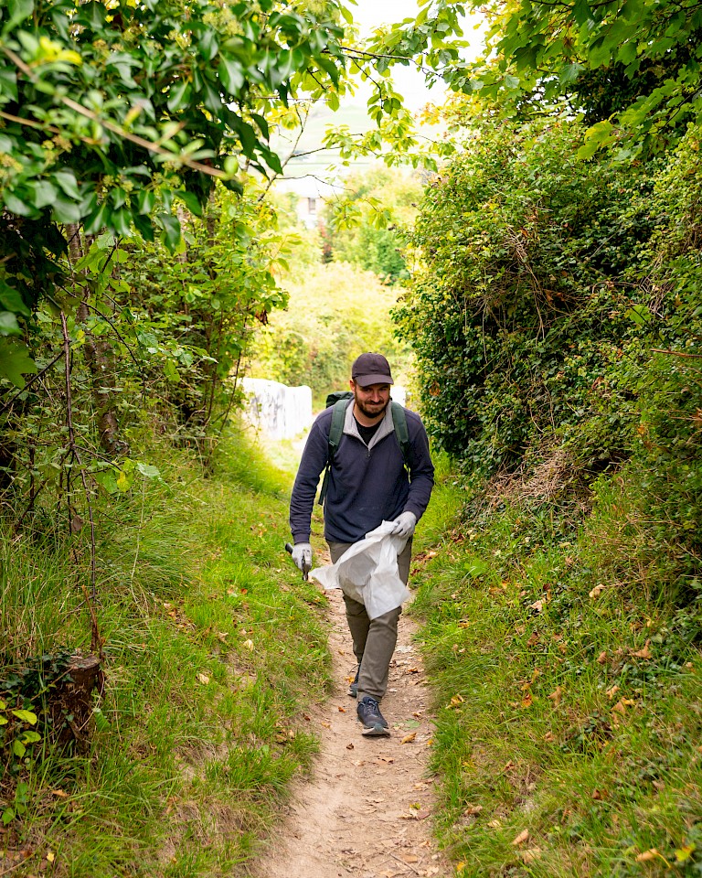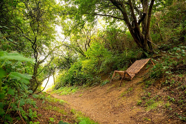 Aaron Kopp, Folkestone Fringe’s September Artist in Residence, came to us as an outsider looking inwardly at our forsaken landscape and stood amazed by its elegant, unrefined, natural beauty. Instead of, as so many often do, heading straight to our centre and the places of public recognition, he headed to the liminal outskirts of Folkestone and proclaimed them areas of interest. Aaron spoke about finding magic and how he wants to find and/or create his own magical cosmos’ in Folkestone. I asked Aaron what he meant by “magical cosmos” and he said it “is a worldview that prioritises the experience of life over the authority of truth.” An encouragement to see beyond the simple and factual to allow yourself to explore things that are normally dismissed as commonplace or uninteresting. It is a task to find magic in something that is plain and devoid of mystery. Aaron’s intention was to find somewhere ordinary and make something of it. Choosing an unnamed path with little to no evidence of public nostalgia attached to it, nothing to make it name-worthy was of course his first step. After exploring several paths, making detours, and getting lost in our Kent Downs, Aaron decided on an unassuming path that led from the top of Folkestone’s East Cliff to Capel-le-Ferne and the white cliffs of the Kent Downs. A path that is used by many but only to transport from A to B. Quite unloved and uncared for. As a result, Aaron’s three main motives were to make the path a usable space, a destination rather than something to pass through, to find its magic, and to reward people's curiosity.