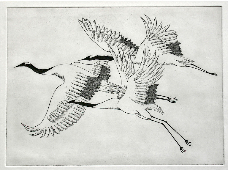 An exhibition of prints and collages by Catherine Robinson, with reflections by Claude, tracing the migration of cranes and people across the world.