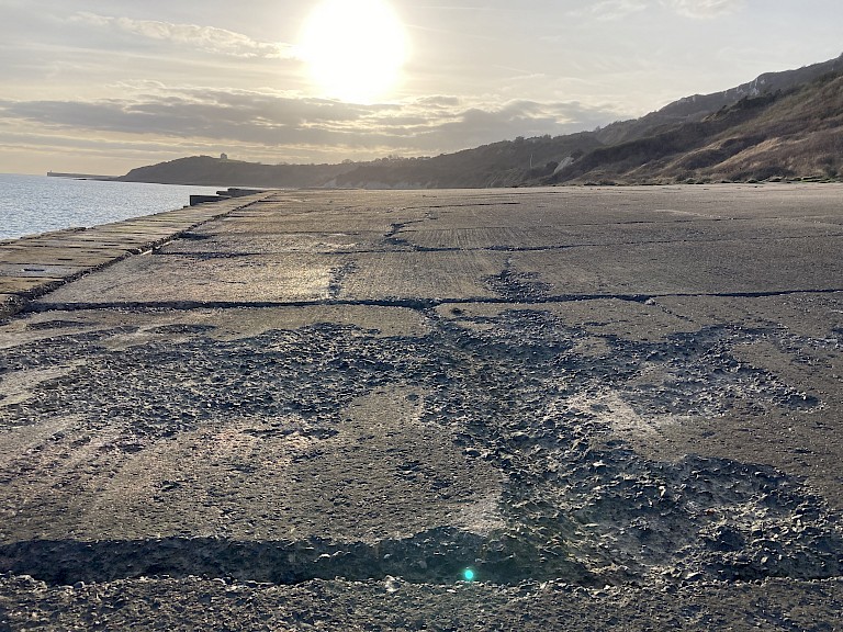 Limited parking is available in the small carpark above the campsite. Follow the signs from Wear Bay Road to Folkestone Camping & Caravanning Club campsite and for parking take the left-hand fork before the road reaches the beach. Alternatively, it is a pleasant 30-minute walk from East Cliff along the beach or via the road.