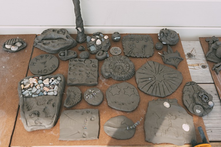 Printmaking – Monoprints, potato stamps, woodcut or lino. Why not make use of the sun and have a look at a cyanotype kit!