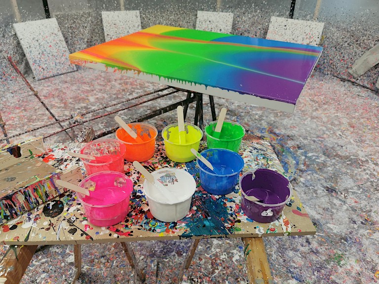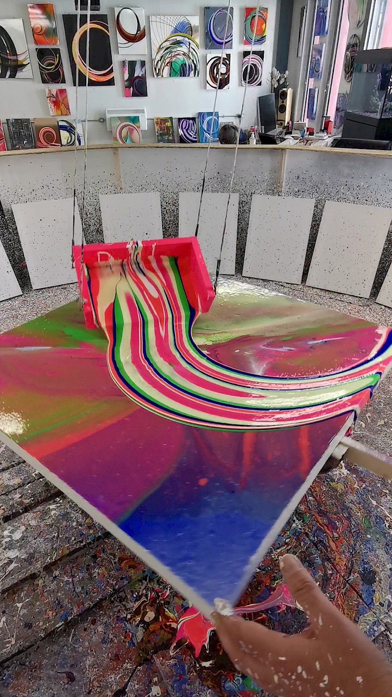 Spin art is not a new concept, however John brings a different edge to his artwork by using various apparatus, troughs filled with paint amongst others.