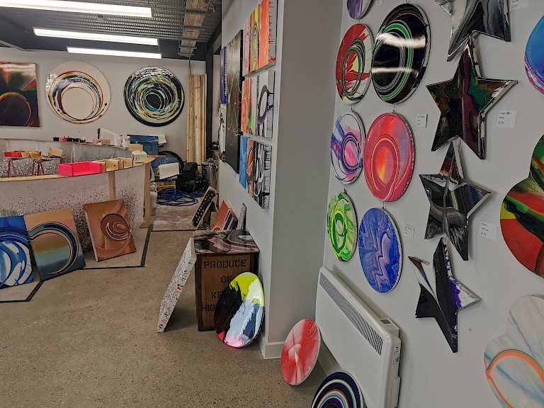 John Hammond E is a modern abstract artist local to the Southeast coast of Kent, England, based in the highly acclaimed and world famous Folkestone Creative Quarter, the UK’s largest urban outdoor exhibition of contemporary art. He produces acrylic spin art and paint with varying techniques, using centrifugal force and gravity. All pieces are original and unique.
