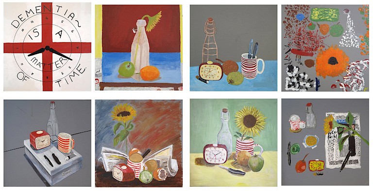 Created Out of Mind resident artist Charles Harrison and a team of researchers at the UCL Dementia Research Centre worked with people living with dementia and a group of ‘healthy’ participants to produce a series of still-life paintings that unveiled novel perceptions about the experience of different forms of dementia. Also a film exploring the hand gestures of people administering and being administered neuropsychological testing material based on the archival videos of brain researcher Prof Elizabeth Kerr Warrington FRS.