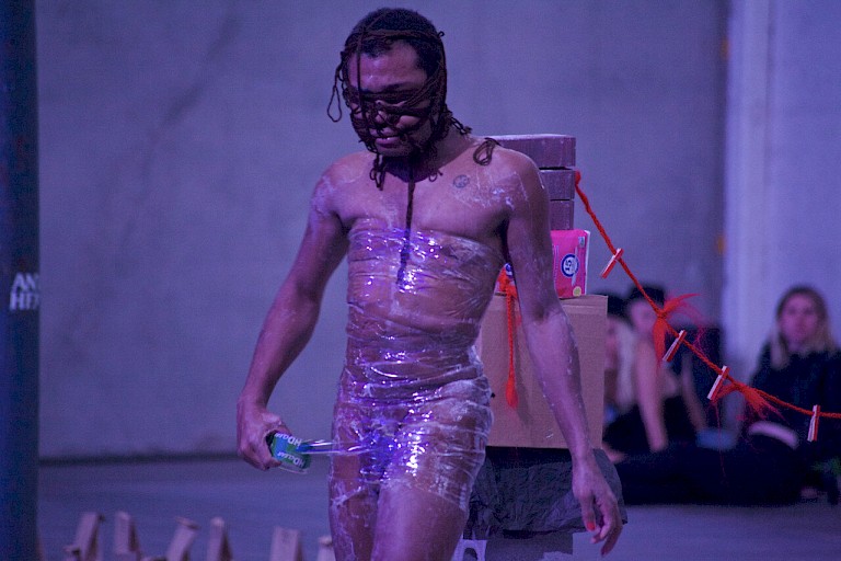 > Keijaun Thomas is a New York based artist. Her work in performance, multimedia installation, and poetry explores the labor of black femmes in situations ranging from housework and hairdressing to athletic training and exotic dancing. Her performances combine rhapsodic layers of live and recorded voice, and her poems slip between various modes of address, exploring the pleasures and pressures of dependency, care, and support.