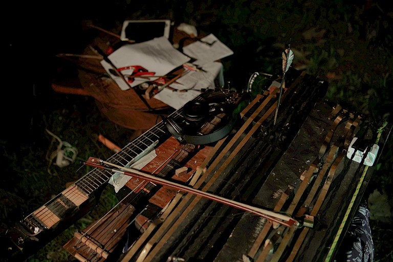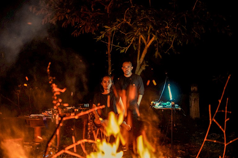Their music strikes a perfect balance between their avant-garde influences and cultural heritage to create truly contemporary Indonesian new music. Inventions like his handcrafted ‘Bamboo Spear’; a thick stem of bamboo strung up with percussive strips of the animal skin alongside steel strings, that when amplified, fuses elements of traditional Indonesian instrumentation with garage guitar distortion. Sonically dynamic, the instrument can be rhythmically percussive on one side whilst being melodically bowed and plucked on the other.