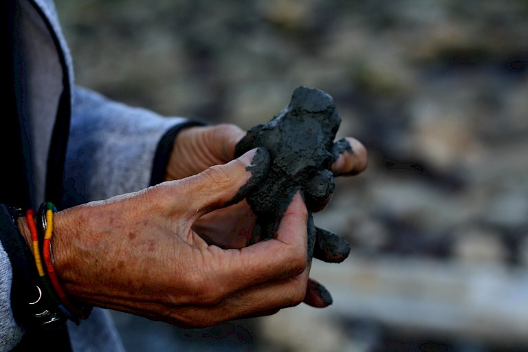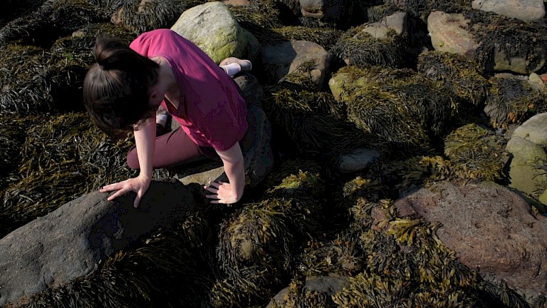 As well as learning about the town through the people that live here, it is also important to Siobhán that she has her own direct and pure relationship with the place that exists outside of all she has learnt and heard. Early in the morning, while the tide is far out, is when Siobhán has been feeling her own way through the landscape. The textures, materials, forms, and sounds informing the movement of her body.