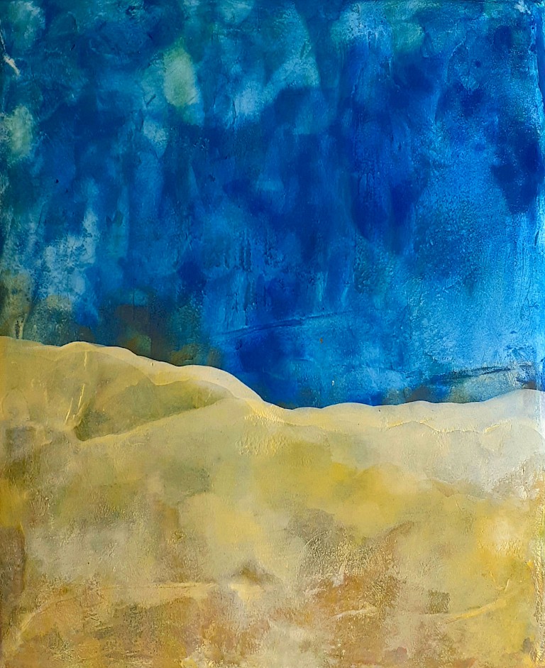We are painters working at a time of great environmental change. In our individual practices, we both explore ways in which painting can be a carrier of stories; often these stories are told through composition, symbols, characters, and in some works the materials themselves have stories to tell. In similar yet different ways, our paintings offer more than just traditional human perspectives on contemporary landscape. In Robert’s work, the viewer is encouraged to meander vertically through layers which continue seemingly underground, passing through zones of material whilst digging for new meaning. In Marielle’s work the viewer is presented with up-close, enlarged or maybe even aerial perspectives, in her more abstract paintings. Presenting our work together for the first time, our paintings explore the potential for painting to envisage the changes we bear witness to in landscape today.