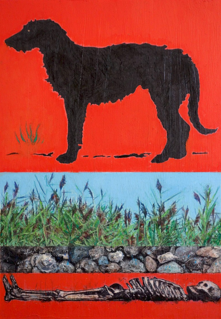 Robert is a current PhD researcher at the Slade School of Fine Art and based in Ealing, West London. Moving through the strata of his paintings digs up histories and ghosts that we may not wish to confront but are bound to our past. Robert uses the materiality of painting as an inquiry to uncover the residue of human impacts on our planet and each other. In particular he explores subjects of stray animals in post-human environments and relationships between harvesting minerals and pigments and their connections to layers of the earth, and the human histories entwined with these materials. He reveals these entanglements through the layers of his paintings and encourages the viewer to engage with these visual connections. The combination of imagery and material in his paintings reveal alternate ways of thinking about our relationship to both our past and future.