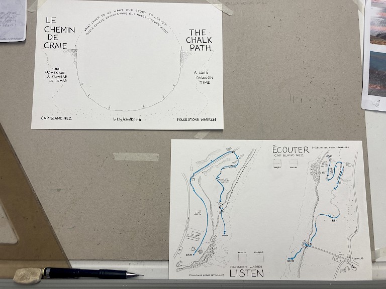 The Chalk Path/Le Chemin de Craie is a bilingual self-guided audio walk through Folkestone Warren and Cap Blanc Nez that invites you to walk down through deep time, to reflect on the past and reimagine the future, considering the enormity of time and it's relationship to our own human existence and impact.