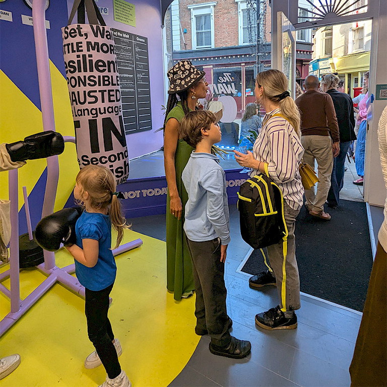 The Waiting Gym was commissioned by and developed in partnership with Mata Argaw, Ibrahim Ahmadzai, Djafarou Djibo, Grmalem Gontse Kasa, Dania Khaled and Obaida Sharkia, creative producers at The Studio, a co-design studio centring young people with first-hand experience of navigating the UK asylum system. This is The Studio’s third public artwork in Folkestone, following 2024’s billboard ‘Travel Deep’ in Payers Park, and climbable poem ‘Holding On’ at F51. This year, The Waiting Gym is presented as a co-commission with Folkestone Fringe.