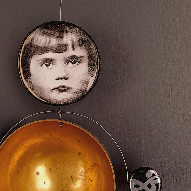 Angela Schutz is a mixed media artist and psychologist whose work is inspired by the rich tapestry of human experience and materials and objects picked from everyday life. Her curiosity as a psychologist takes us into the world underneath the surface and knocks on doors to forgotten memories and parts of our soul that normally don't show up.