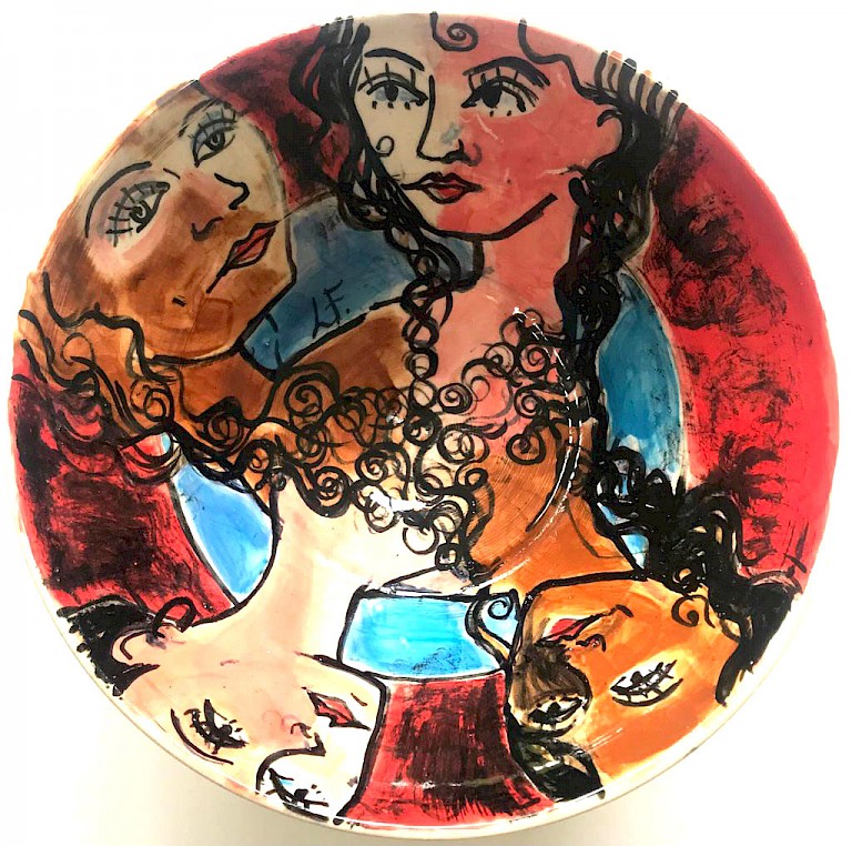 The 44-year creative collaboration between Laura’s painting and David’s ceramics started on the Farnham Fine Art degree. The current body of work is entitled “Made with love in interesting times", and has been curated for the subplot and celebrates the beauty and strength of women and the texture, light and drama of our extraordinary planet.