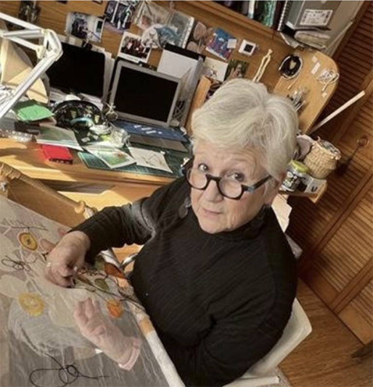 Marie-Hélène Hunter is a textile artist based in Folkestone since 2018. Over the last few years, she has concentrated on drawing with threads on vintage handkerchiefs, trying to translate emotions and memories into simple lines. She initiated and managed the “ Tree-iennial” community project involving several groups from Folkestone such as: